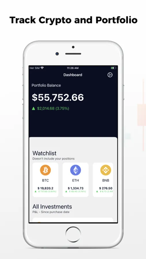 Price tracking, interactive charts, and portfolio tracking are among the app features.