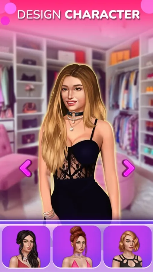 In each story, you have the opportunity to make your heroine unique, choose her clothes and hairstyle!