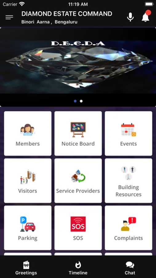 Society Residents & Apartment owners need a common platform through which they can connect with their neighbours, discuss common issues of the society/apartment. DIAMOND ESTATE COMMAND app helps them come together as a community and is a Must have App for all residents.