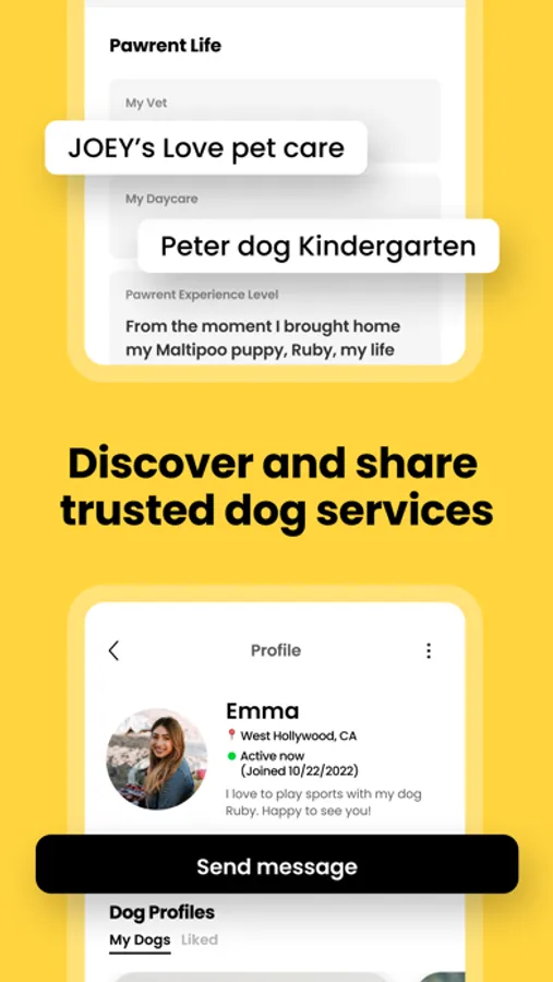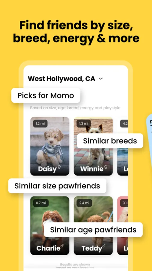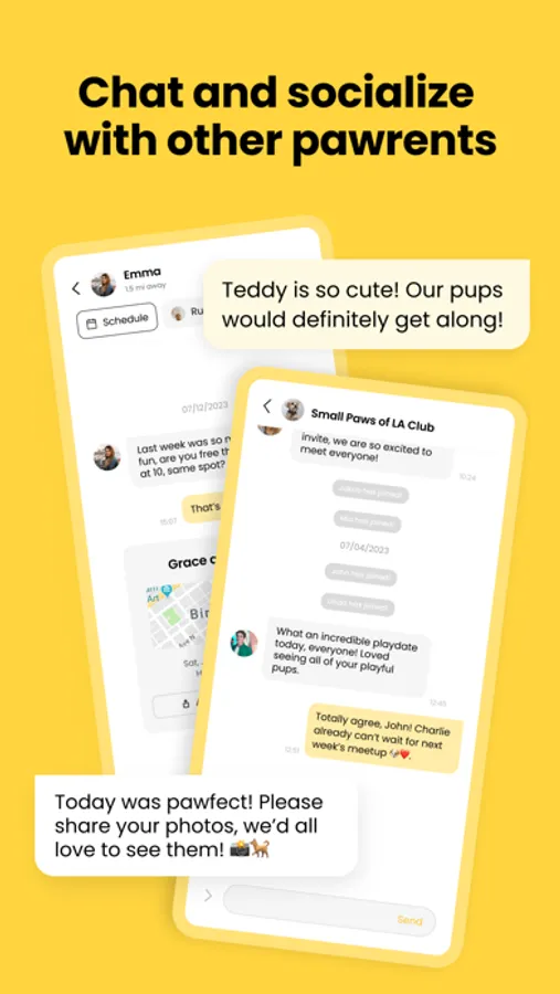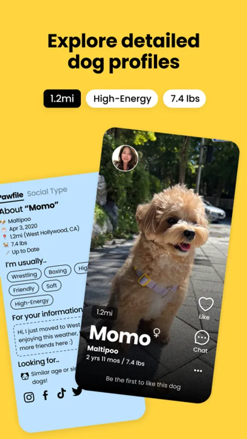 Your pet's new best buddy is only a like away! Search and explore nearby dogs and potential playdate locations directly on a map. Check detailed profiles to choose the perfect dog friend in your neighborhood, and plan 1:1 dog meetups with convenient in-chat reminders. Share your favorite dog-friendly parks, chat with other pawrents, and meet up for memorable experiences.