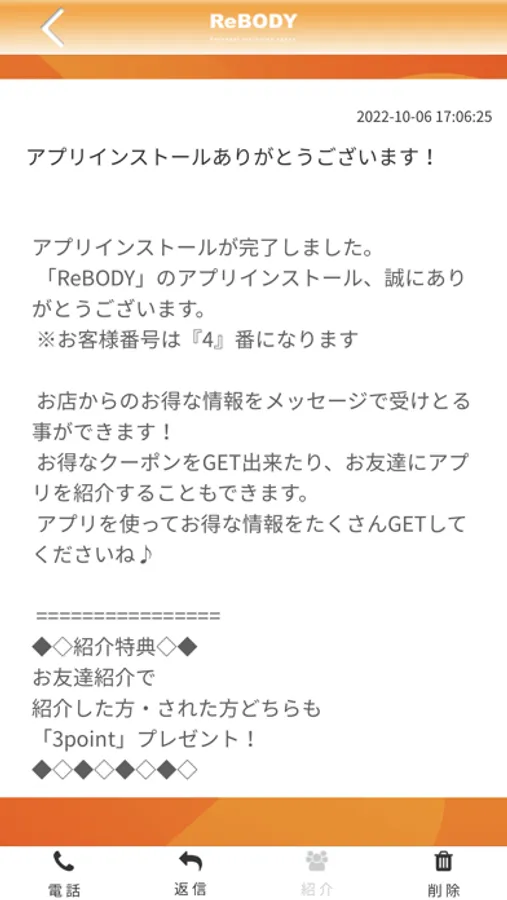 このアプリでは、ReBODYの最新情報の受け取りや便利な機能を使う事ができます。