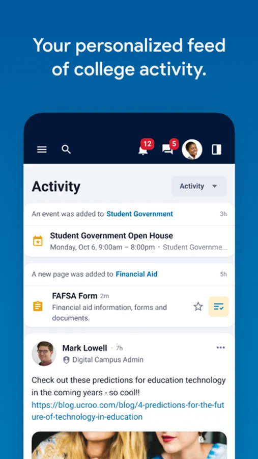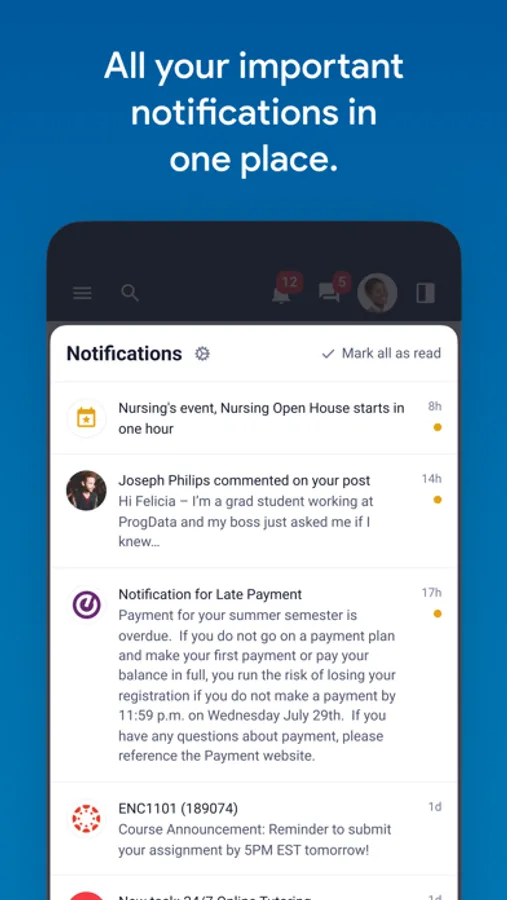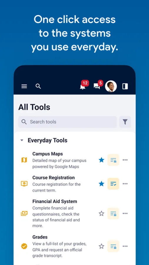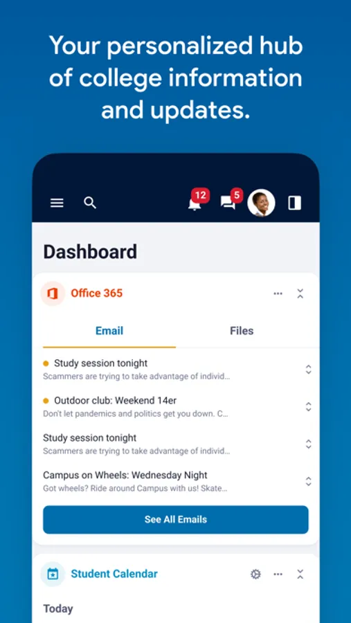 - Receive key notifications from Banner, Moodle ,and other everyday systems.