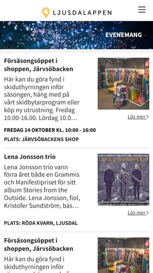 Detta är ett privat initiativ där vi samlar alla information om Ljusdal i en enda app. Här hittar du lokala nyheter, erbjudanden från butiker, dagens lunch, evenemang, lediga jobb, quiz, väder, sålda bostäder, lediga bostäder, trafikinformation, föreningslista, dagens ros, dödsannonser, pollenrapporter.