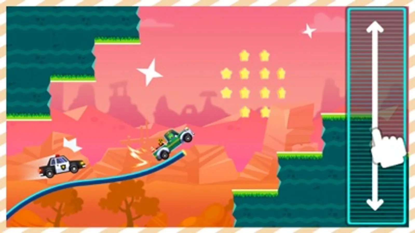 As long as you slide up and down the screen, you can draw the road of the car. If you are about to be overtaken by a police car, you might as well try to move forward like a roller coaster and throw the police car away.