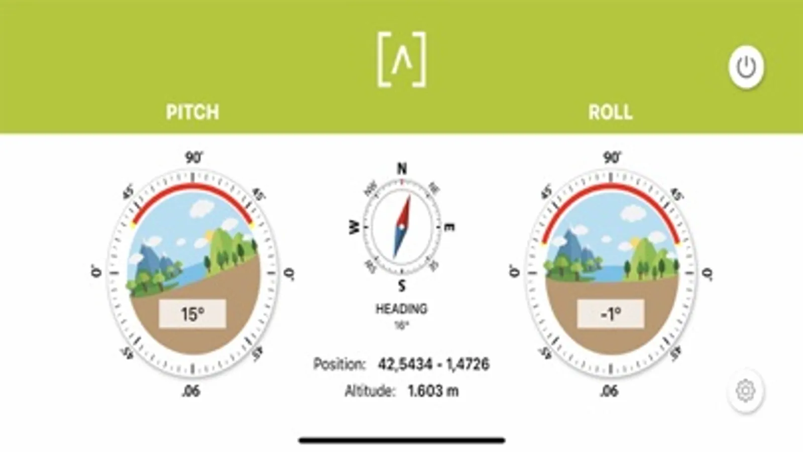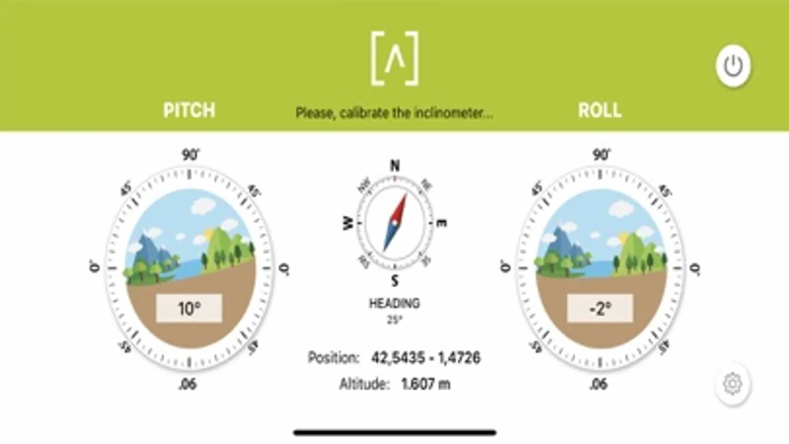 Simple landmeter for off-road vehicles, showing pitch, roll and heading. Calibration through an easy 2-step process.