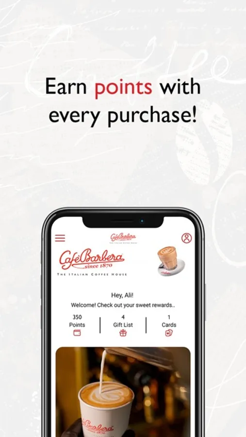 Be rewarded each time you make a purchase with Cafe Barbera!