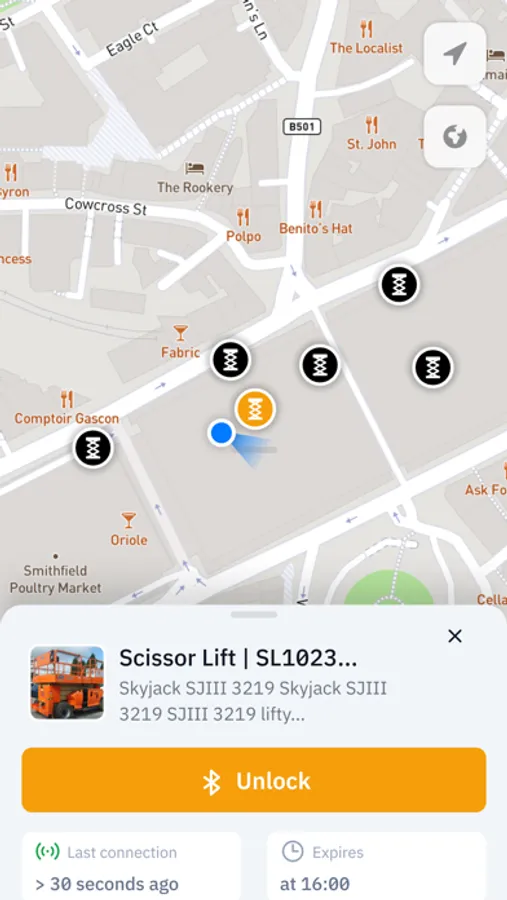 Trackunit On gives operators an up-to-the-minute list of available machines across jobsites, plus a selection of digital keys to easily and securely unlock mixed-fleet construction equipment according to pre-set permissions.