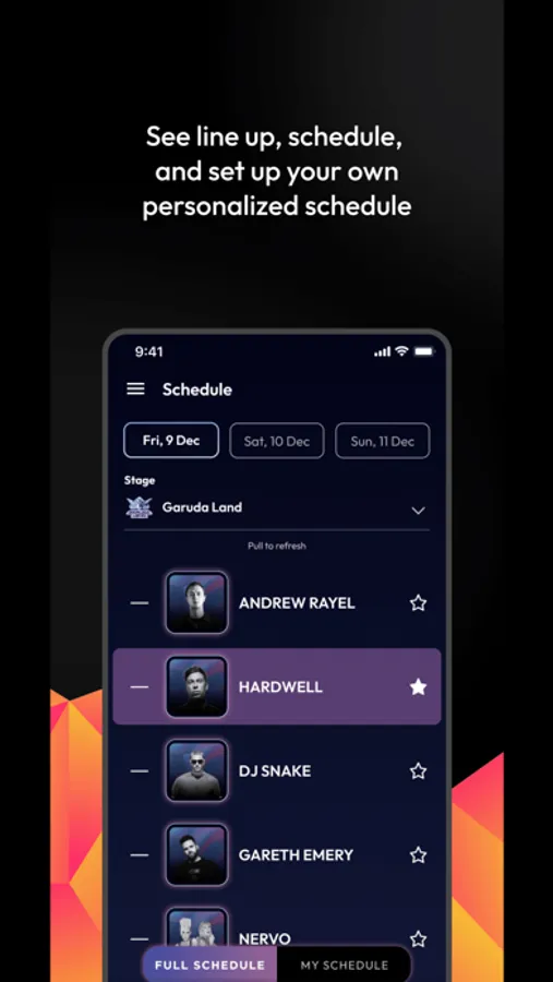 - Schedule: Plan your festival weekends ahead of the time - you can also customize your own schedule!