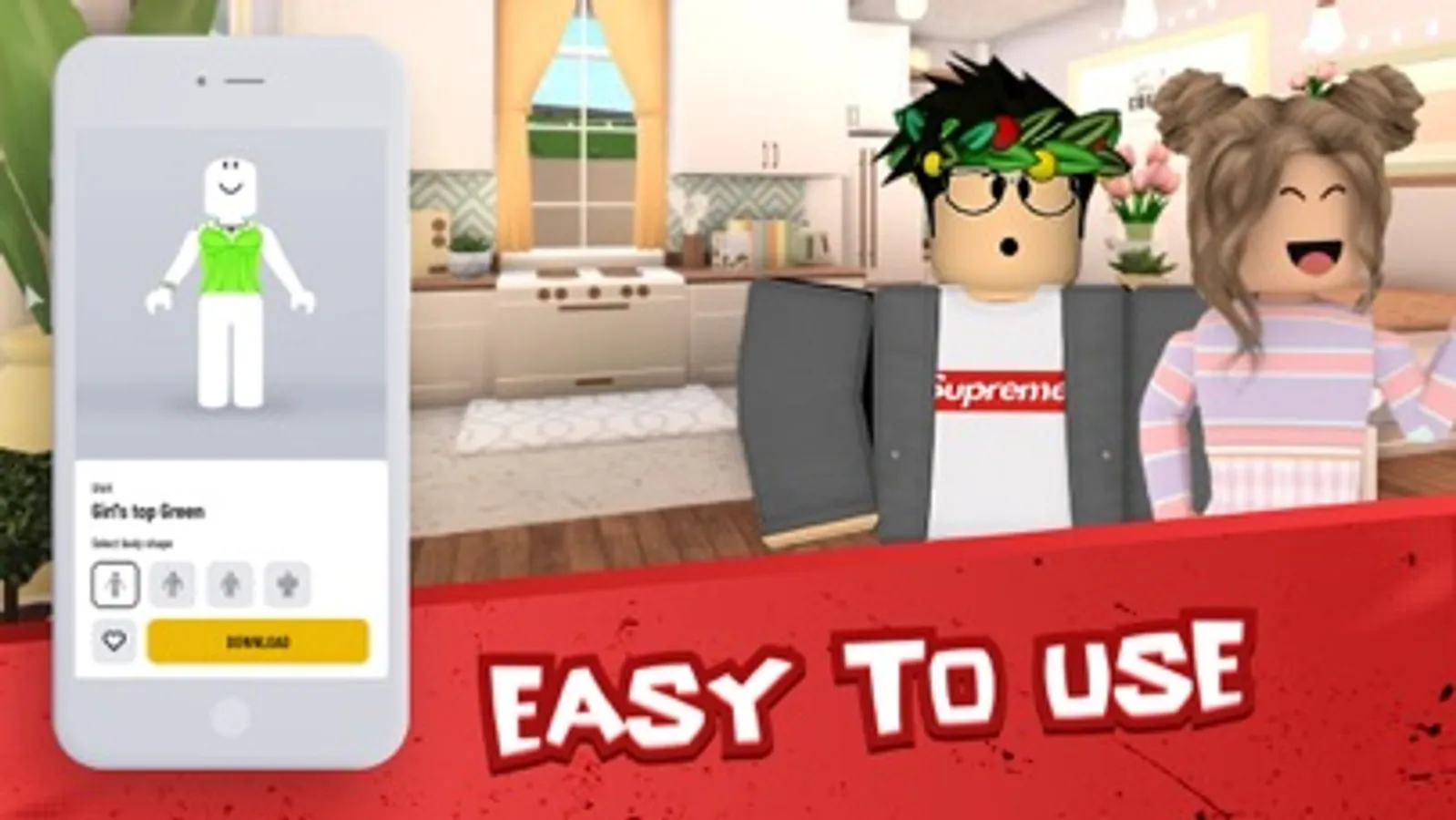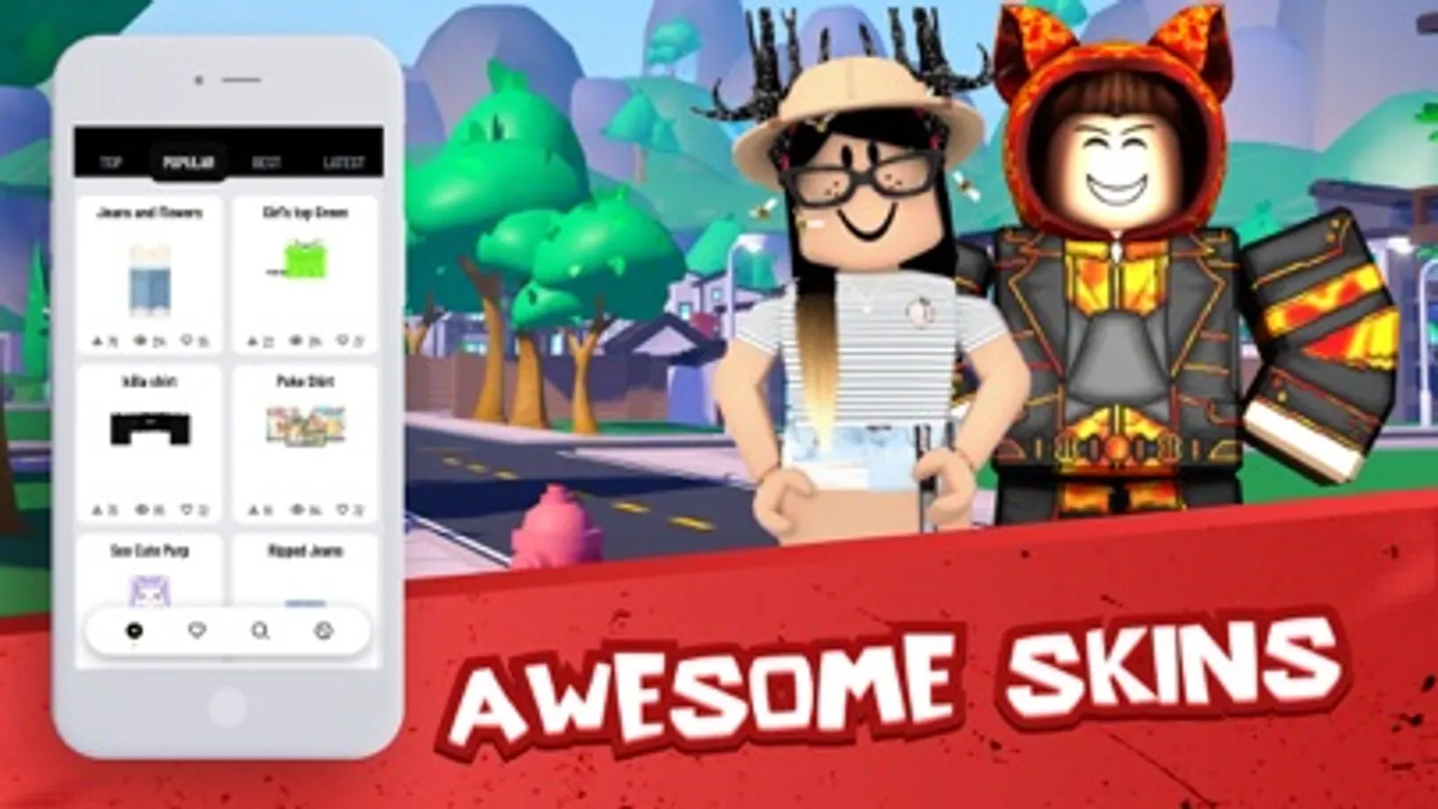 If you want to decorate your game characters with a new look, try the Skins for Roblox app right now. We have brought you a free app that allows you to change the look of your game characters in just a few taps. The app features hundreds of clothing options for male and female characters. The best part about this app is that it's incredibly easy to use! Simply select the item you want from the menu, download and then drag it onto your character's body.