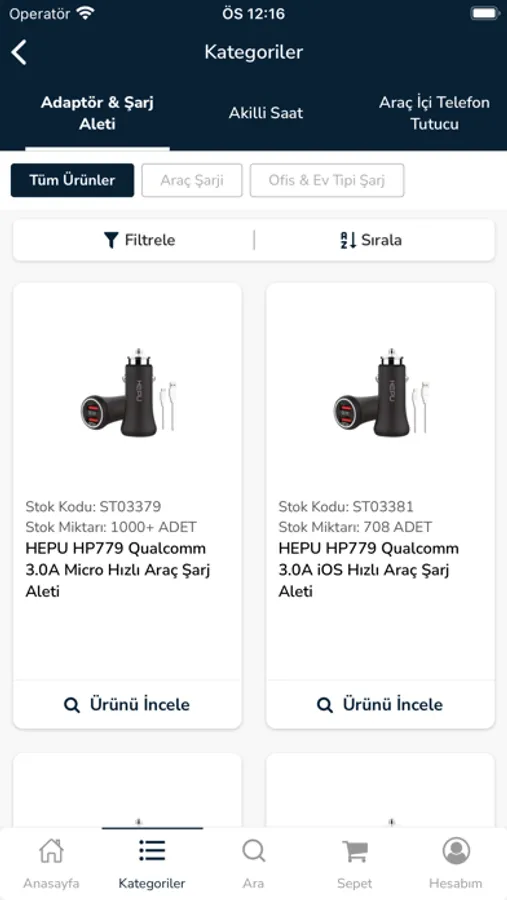 * Ürün kategorilerinde filtreleme yapabilirsiniz