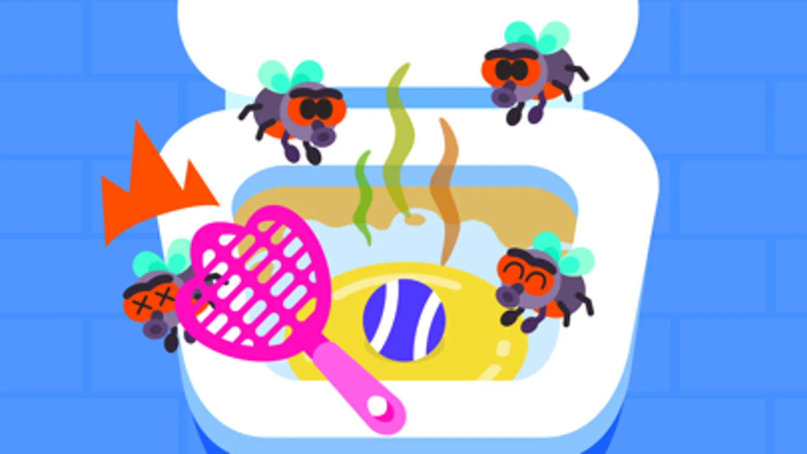 -Toilet: The smelly toilet is clogged! Catch flies with a fly swatter and unclogged toilet. Don't forget to flush the toilet