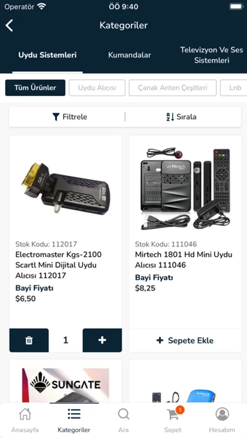 * Ürün kategorilerinde filtreleme yapabilirsiniz
