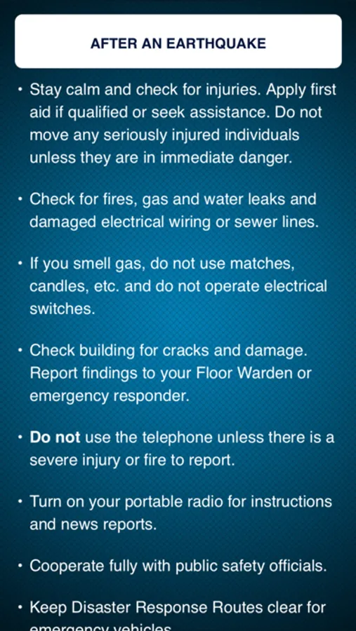 · Detailed emergency procedures for employees, partners and visitors