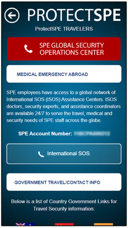 · Information on how to register for SPE’s internal emergency notification service (AlertSPE).