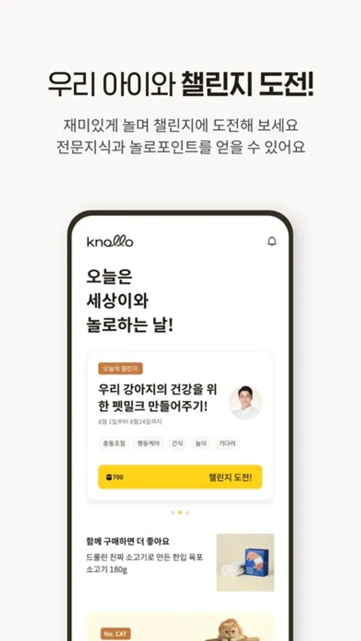 - 반려동물과 함께 즐길 수 있는 챌린지 콘텐츠를 영상으로 제공해요.
