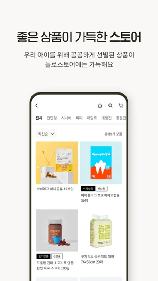 - 반려동물 전문가들이 만든 상품이 가득해요.