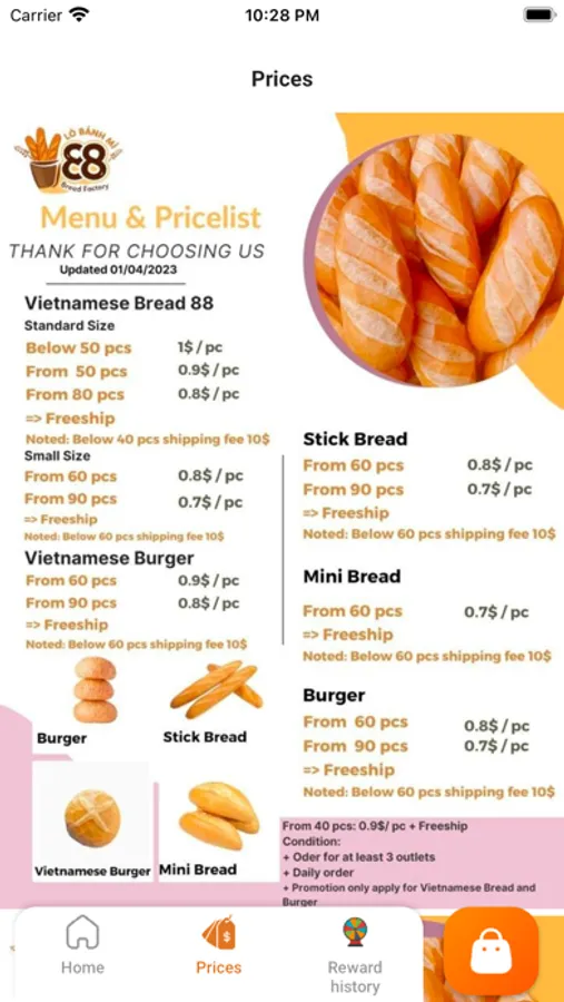 Banh Mi 88's bread ordering app allows you to easily browse through a wide variety of bread options and product lines, from traditional Vietnamese bread to familiar bread as well as creative and customized bread. Guaranteed to meet all the needs of our customers.