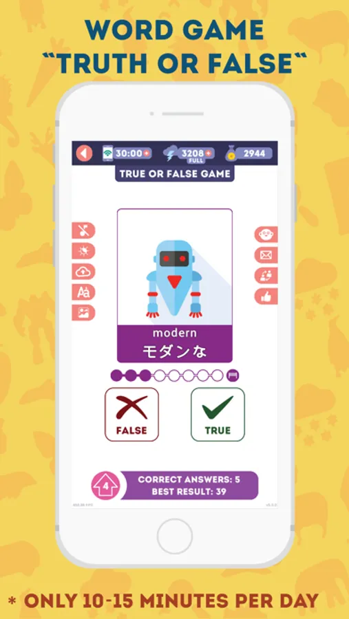 Review Past Material - Many good apps do not pay enough attention to review past material! For this purpose we created the word game "True or False". It is very simple, but it's addictive and the most importantly, it helps to repeat past material and never to forget it!