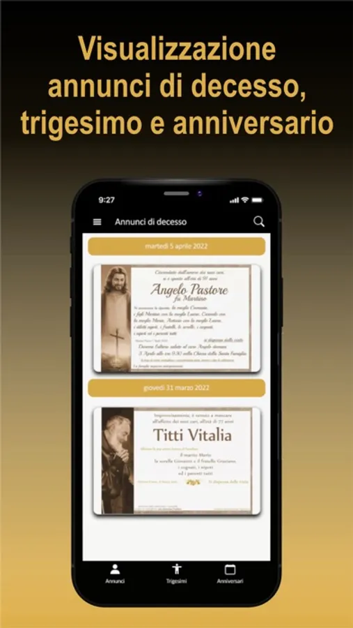 • giorno per giorno, gli annunci di decesso gli anniversari e i manifesti di partecipazione.