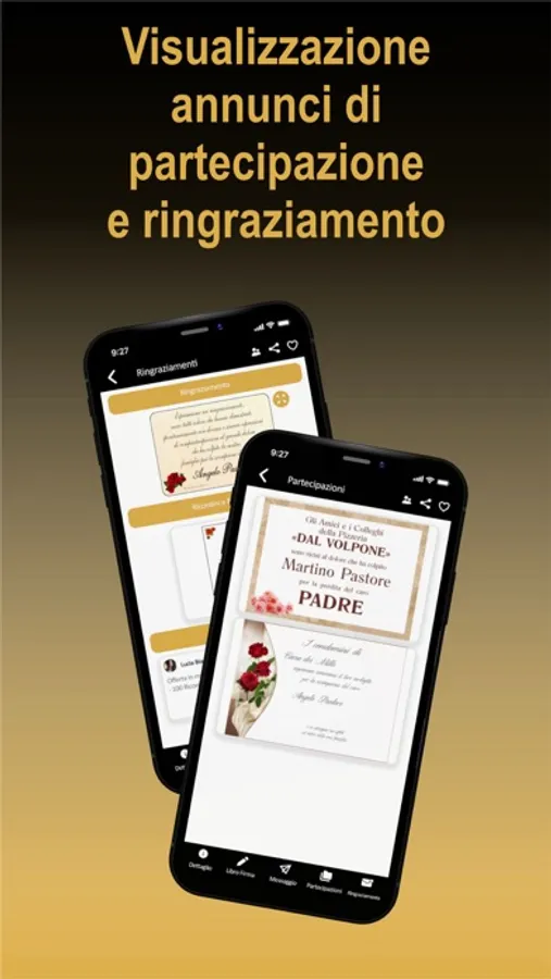 La nostra app è affidabile e seria, vi accompagna virtualmente nel momento del cordoglio, proponendovi una vasta gamma di servizi tra i quali anche una sezione dedicata dove è possibile prendere visione di tutti i nostri partners e mettervi in contatto con loro direttamente dal tuo smartphone e tablet!