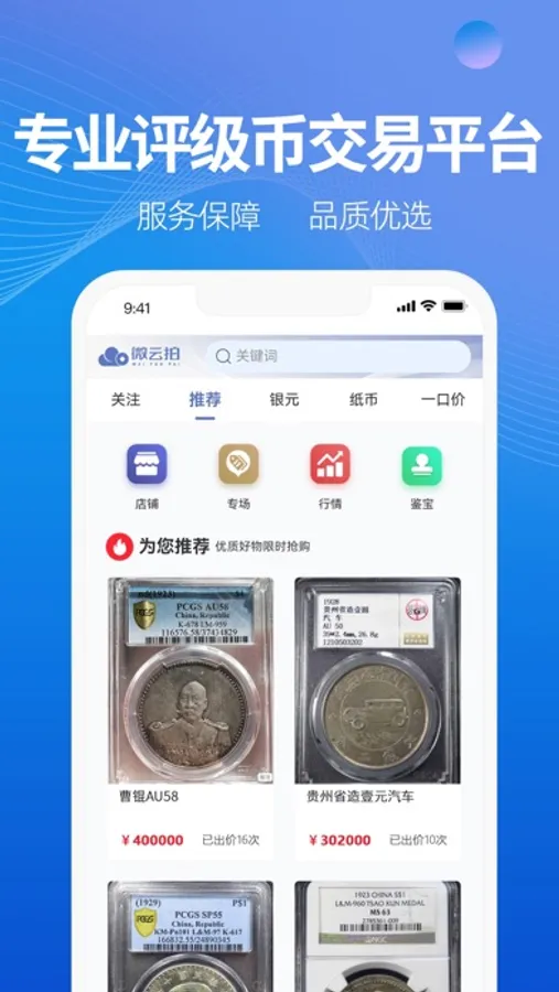 微云拍-专业的钱币拍卖平台,在这里我们为您提供: