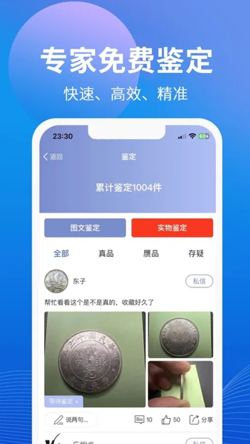 2、免费鉴定银元、古钱、铜钱、金银锭、纸币、邮票和徽章