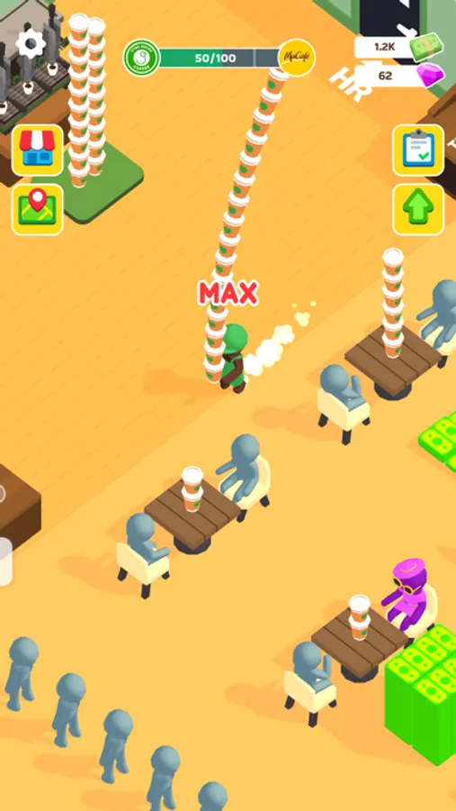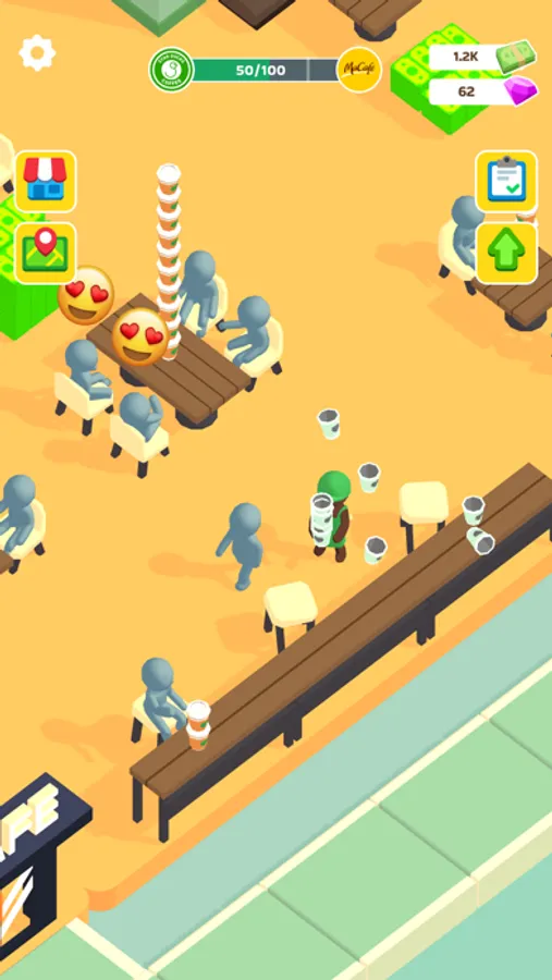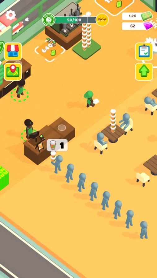 Sell a variety of drinks, keep your store clean and make your customers satisfied. Expanding your coffee shop allows you to hire employees, buy new tables, and attract more customers!