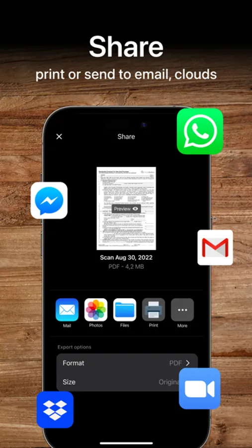 • Share your scans to Mail, AirDrop, Message, or another app;