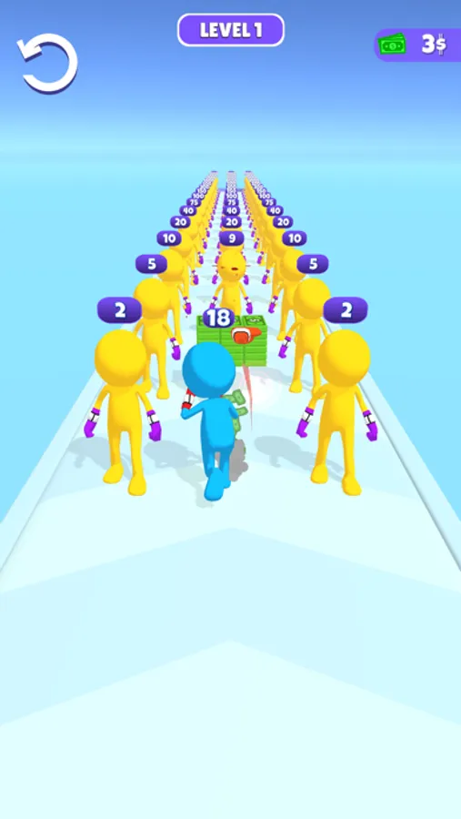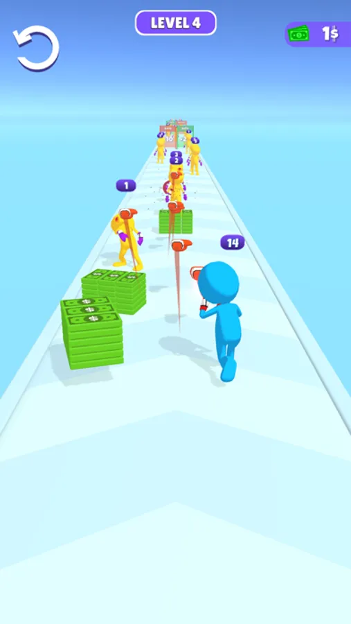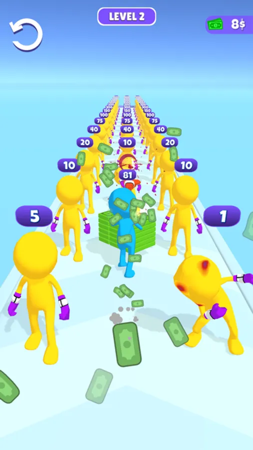 Swerve to control your character. Improve your skills via doors. Defeat the enemies with your punches. Don't let them punch you.