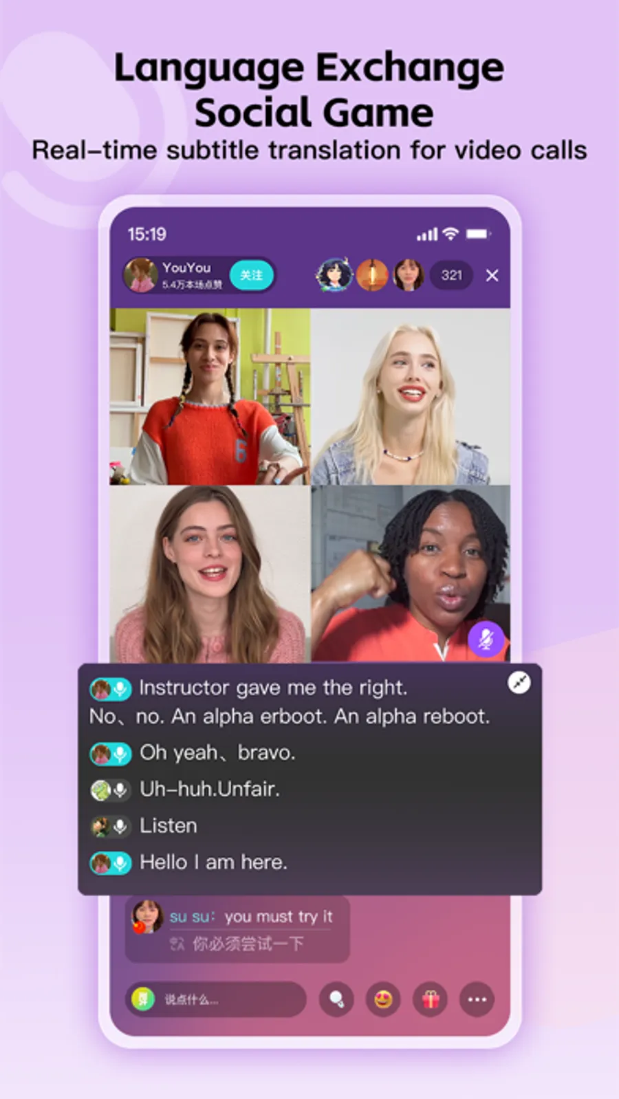Powerful AI Auxiliary real-time subtitles & translation, allowing friends from different countries & regions to communicate without language barriers;