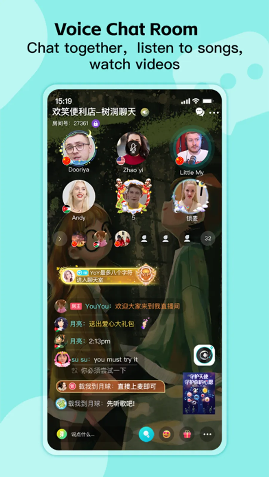 Powerful multi-functional voice chat room, play games, chat together, listen to songs, watch videos;