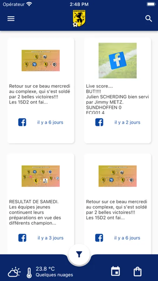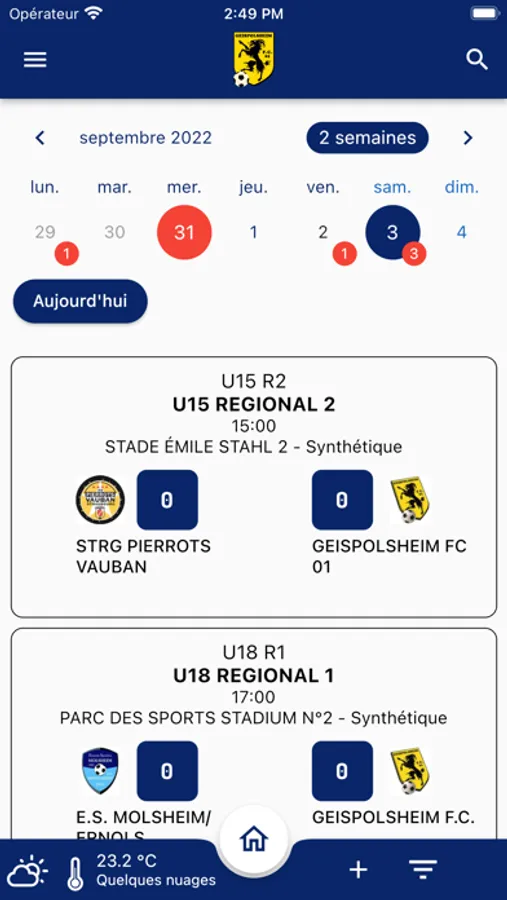 Actualité du club, équipes, effectifs, calendriers et résultats et suivi des rencontres en live via la notification des temps forts !