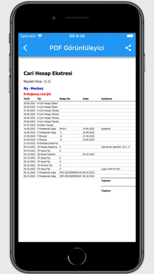Ekstre alabilir, paylaşım ve e-mail olarak gönderebilirsiniz.