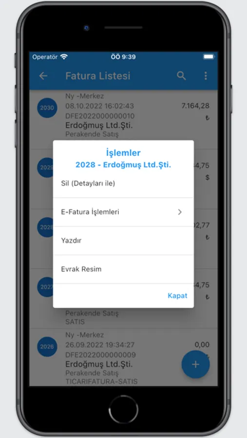 Girilen siparişler ister irsaliyeye istenir ise faturaya dönüştürülebilirsiniz. E-irsaliye ve E-fatura gönderilebilirsiniz. Girilen siparişlere telefon üzerinden imza alınabilir, konum bilgisi de ekleyebilirsiniz.