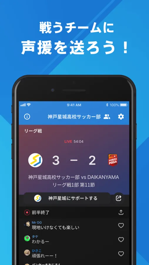 アプリを通じて、チームとの距離がぐっと近くなる。仲間が増える。チームをもっと好きになる!