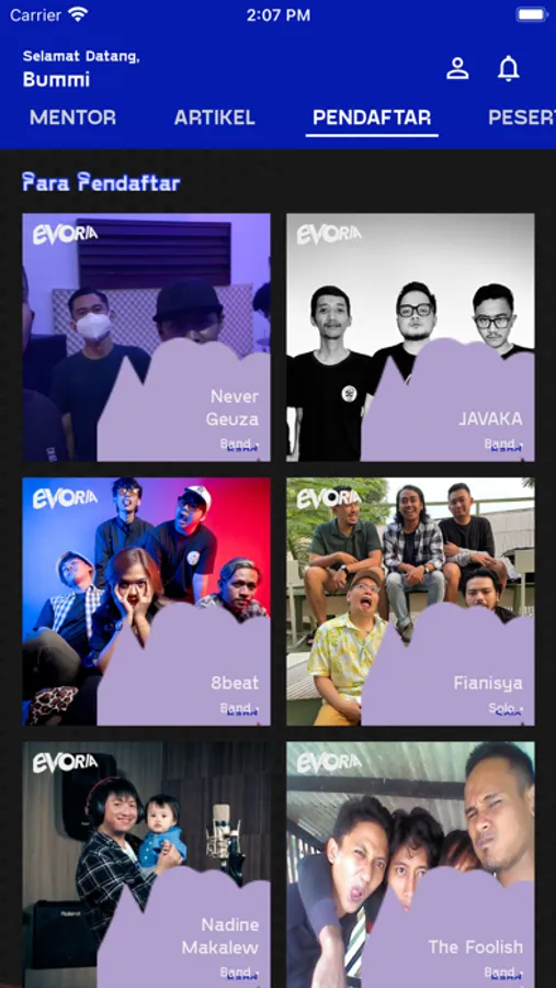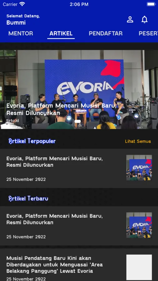 Evoria adalah Platform inkubasi musisi yang bertujuan menjaring para pendatang baru dan memberdayakan mereka dengan pengetahuan, kemampuan kreatif serta bisnis agar berhasil di industri musik