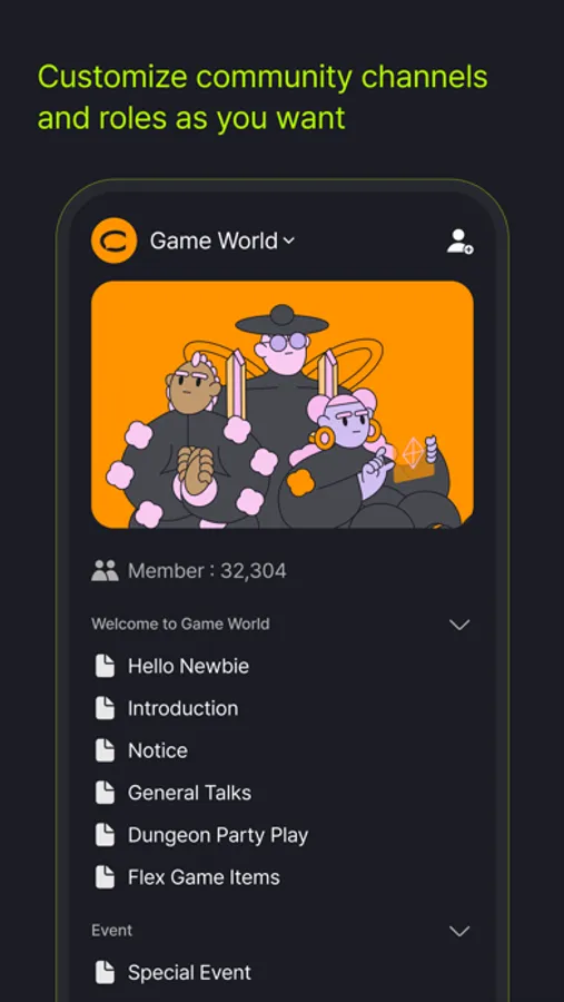 - Create the community you imagine and invite like-minded people to join as members.