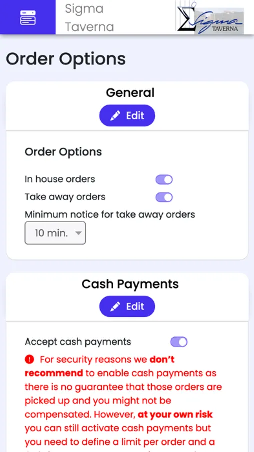 Als sizzly-Gastro-Kunde kannst du in dieser App alle Einstellungen deines Restaurantprofils bearbeiten, sowie Bestellungen die in deinem Restaurant getätigt wurden ansehen und bearbeiten. Damit steht die neben der Web-App ein weitere schnelle Möglichkeit zur Vefügung, dein Restaurant zu verwalten.