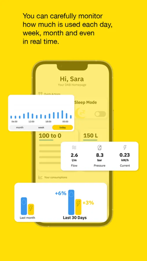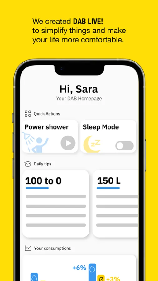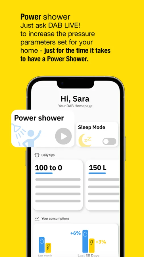 DAB Live! gives you full visibility on your water consumptions and let you notice any anomalous use of water to avoid wasting precious resources. Accept the tips that help you create good habits and take advantage on the functions to use water more sustainably while saving.