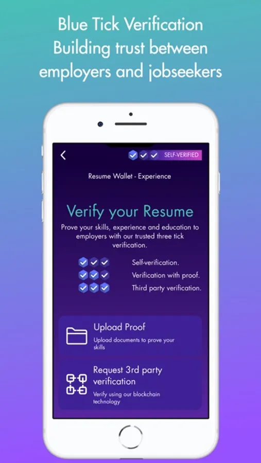 Build trust with Resume Wallet’s trusted three tick verification to prove your identity, skills, experience and education.