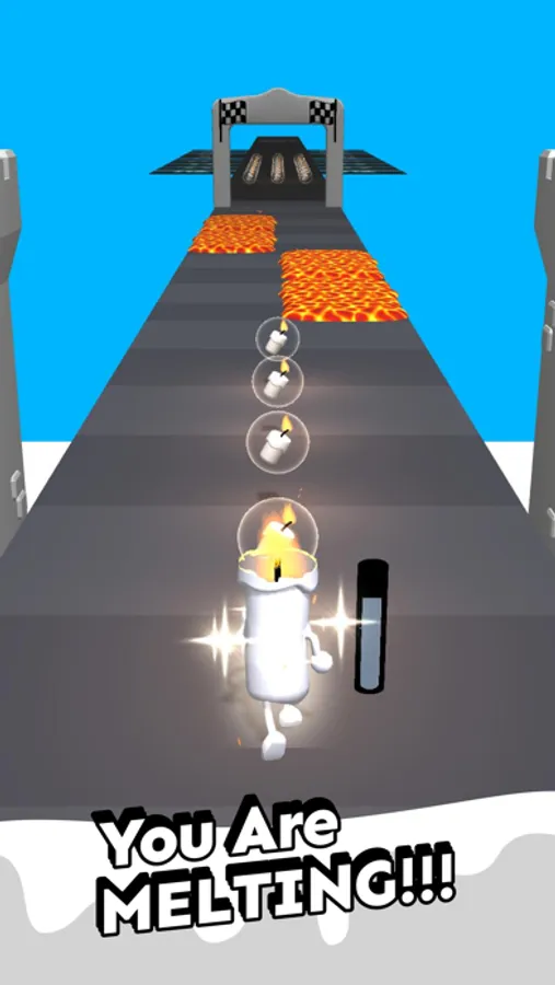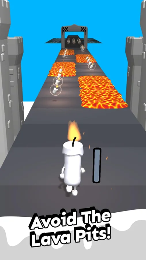 Beware your total MELTDOWN!!! Avoid the lava pits and collect as much wax as you can to grow taller, it’s a race against time and lava, run in fun levels and get your high score even higher each time, how far can you get?! Will you get melted?! That’s up to you, have fun!
