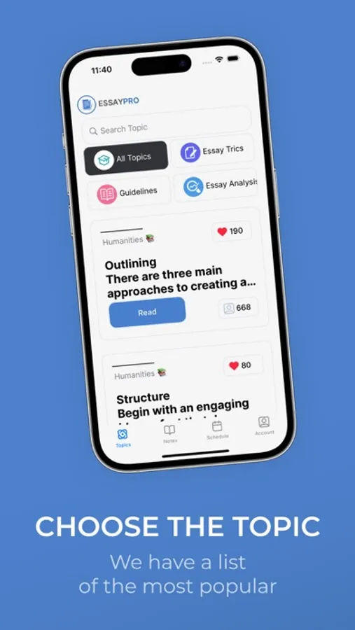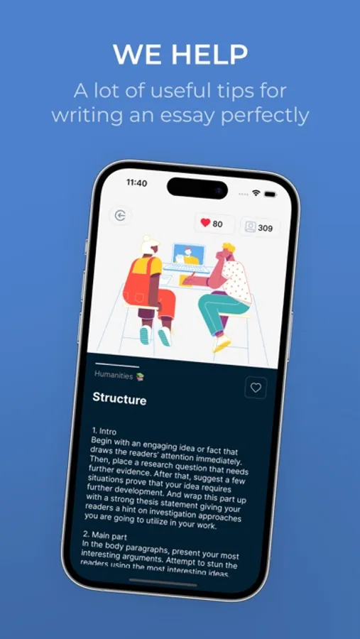 The app is very easy to use. You need to download it and register. You will have access to such features as All topics, Humanities, Natural Science, Essay Analysis, Essay Tricks and Guidelines.
