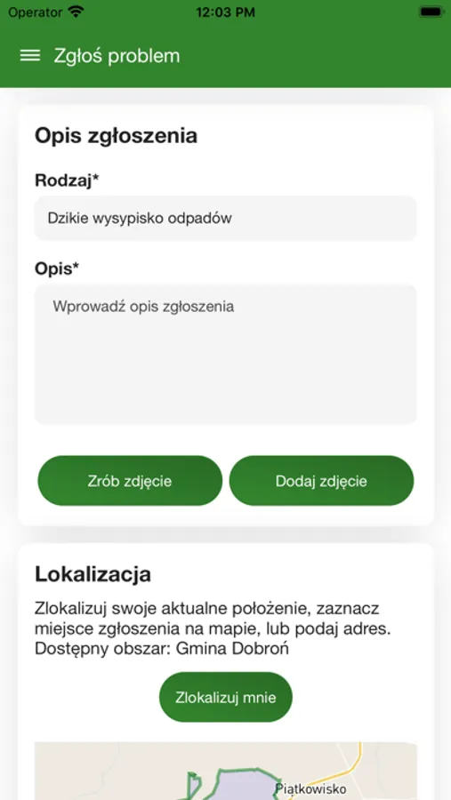 Może to być np. niebezpieczne miejsce, awaria oświetlenia ulicznego, problem z wywozem odpadów czy dzikie wysypisko śmieci. Wybierz kategorię zgłoszenia, zrób zdjęcie, naciśnij przycisk lokalizowania i wyślij zgłoszenie.