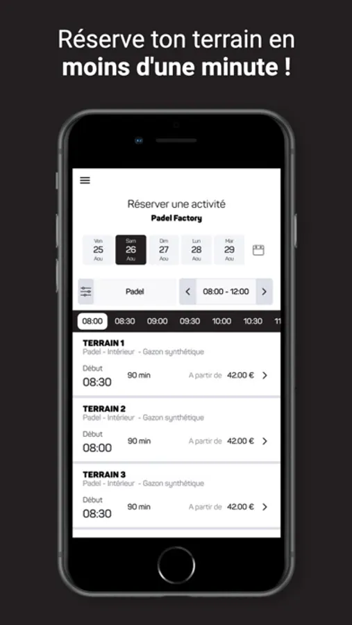 Fini la corvée de réservation ! Avec l'application tu n'as plus qu'à accéder aux créneaux disponibles et à en choisir un. Le club recevra alors automatiquement ta réservation.