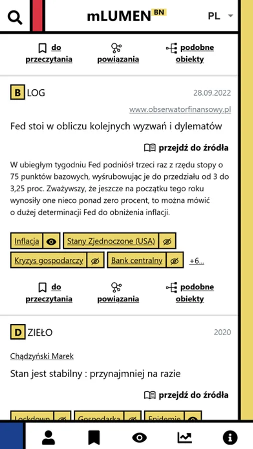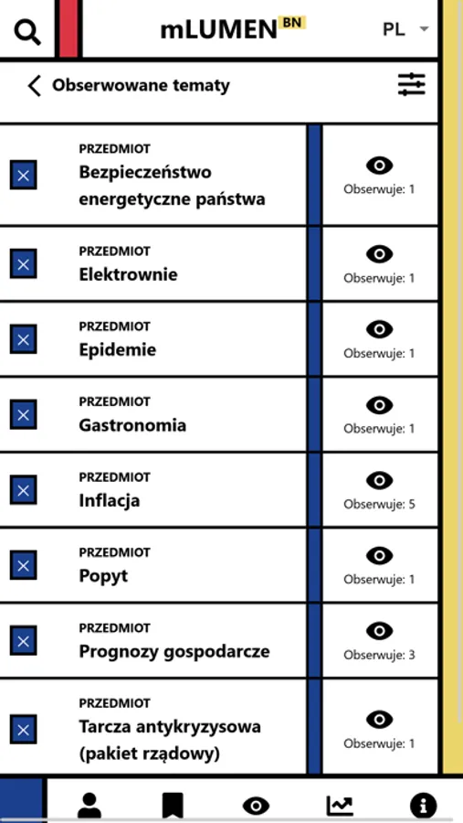 Podstawową funkcją aplikacji jest możliwość obserwowania wybranych "tematów" (stanowiących jednocześnie Deskryptory Biblioteki Narodowej) i przeglądania w widoku głównym ("feed") najnowszych obiektów z nimi związanych.