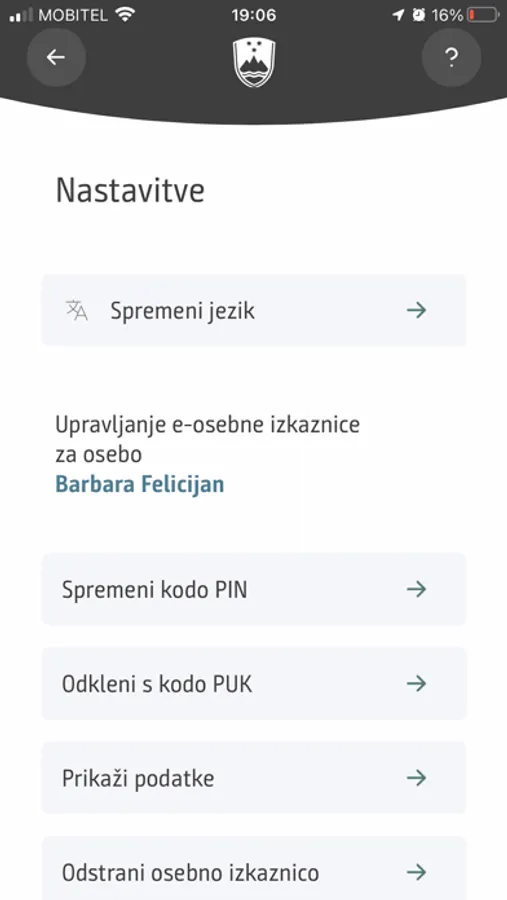 Z mobilno aplikacijo eOsebna lahko urejate, pregledujete, shranite ali odstranite nastavitve in podrobnosti svoje elektronske osebne izkaznice. Svojo osebno izkaznico lahko aktivirate, ji spremenite kodo PIN ali jo odklenete s kodo PUK.