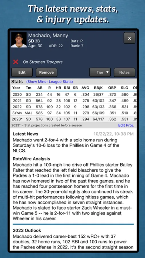 - The ability to download updated news and stat projections until the start of the 2023 season.