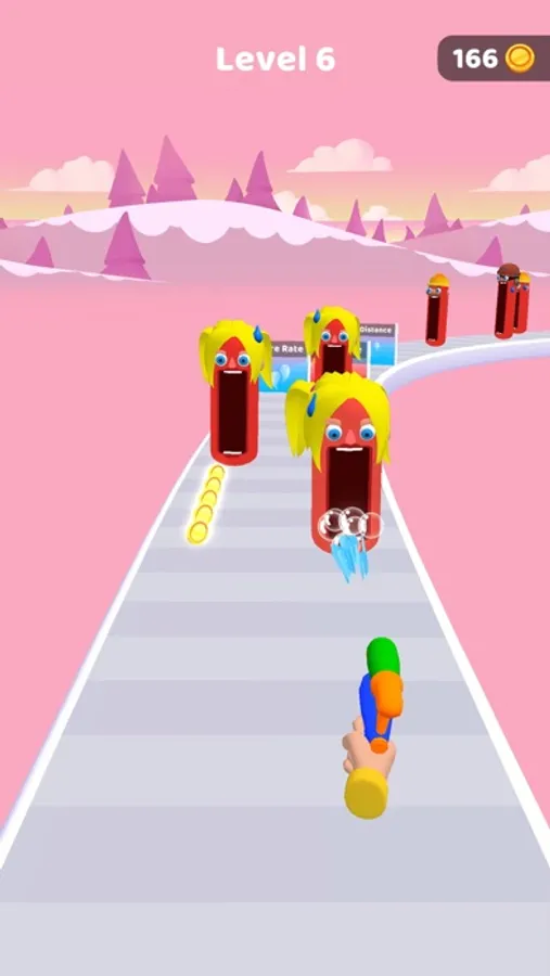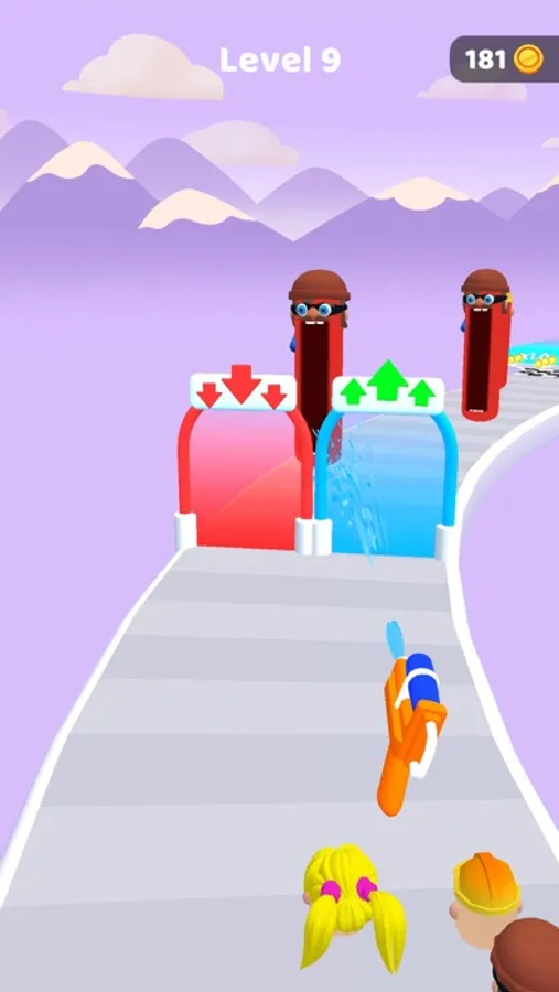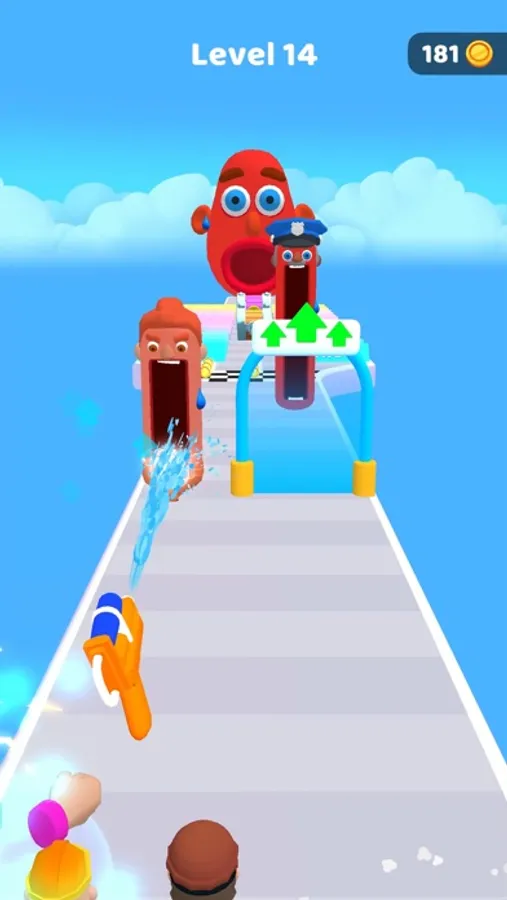 Pass through various gates that can increase or decrease the parameters of your water gun. Each head has three stages of evolution - first it has hands, then weapons.