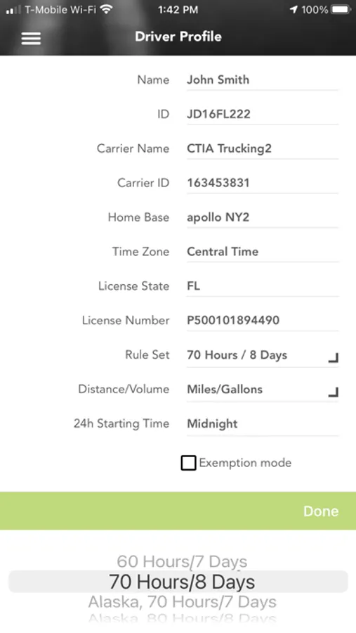 DOT FMCSA self-compliant application to record driver duty status and meet the following regulations: