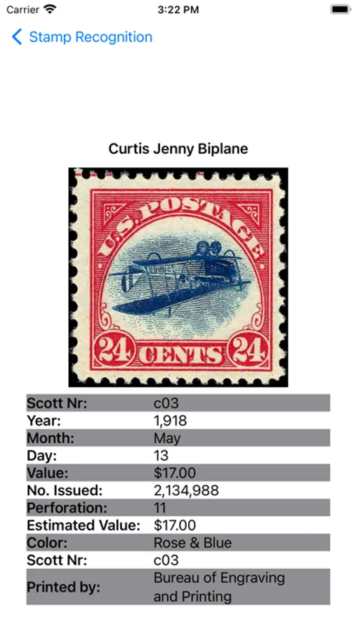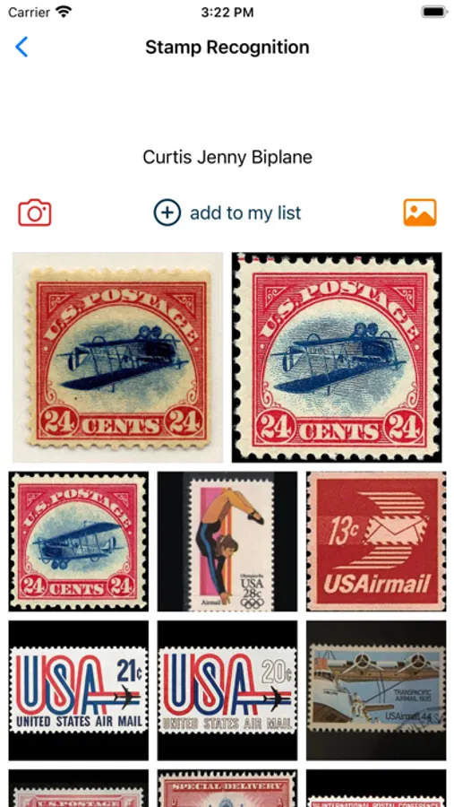 US Airmail Postage Stamp detects the postage stamp by taking a picture. Application features: